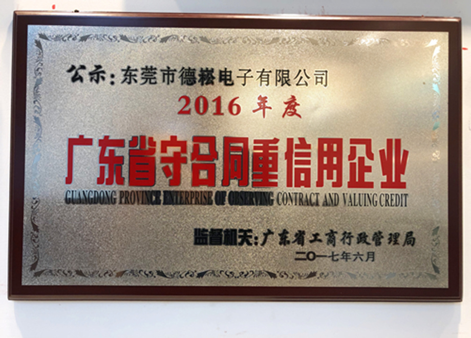 熱烈祝賀德崧公司獲得“廣東省守合同重信用企業”榮譽稱號!