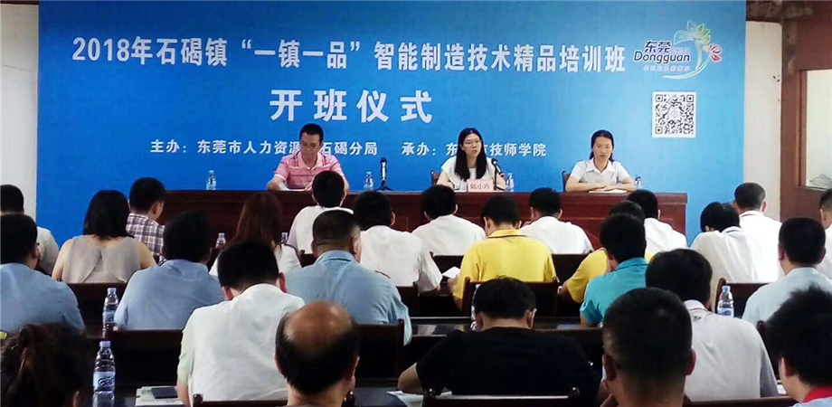 為了響應國家號召,加快實現中國2025,為積極響應東莞市關于打造“技能人才之都”的戰略目標,加快培養石碣鎮產業轉型升級所需的高技能人才, 5月18日上午,2018年石碣鎮“一鎮一品”智能制造技術精品培訓班在石碣人力資源分局開班。東莞市技師學院副院長袁慶南、石碣人力資源局分局局長陳小玲以及市人力資源局職業訓練指導中心相關領導出席活動。