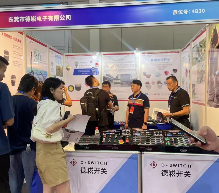 本次展會,D-SWITCH德崧開關展出了應用于儲能領域各種新型開關及SOC電量指示燈,具備高安全、長壽命、防水防塵等性能優勢,可匹配各類客戶的不同需求。現場同時展出了應用于家儲產品/戶外儲能柜/儲能系統/電池箱等相關控制電源的金屬按鈕開關、大電流急停開關、鑰匙開關及信號指示燈。