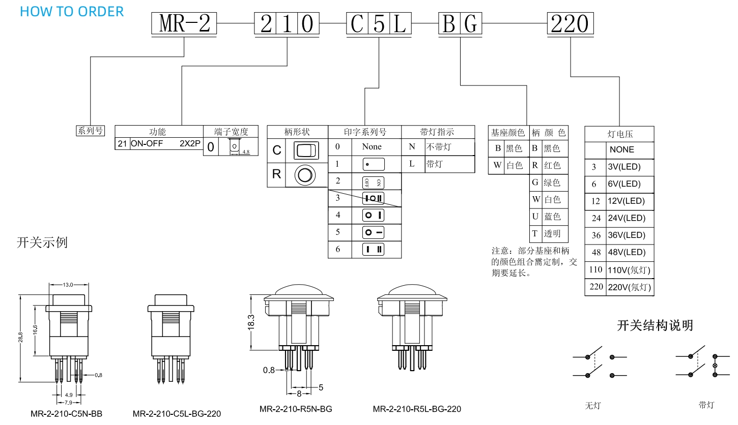 Contact Configuration: ON-OFF ON-OFF-ON ON-ON