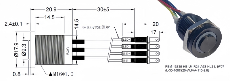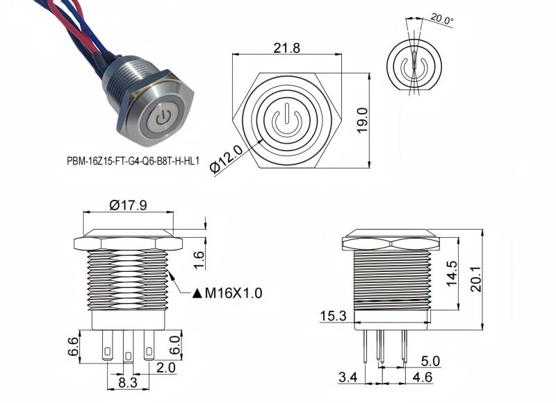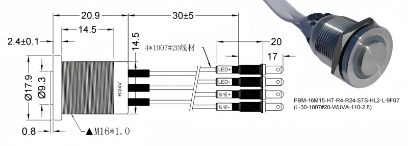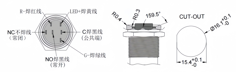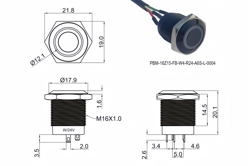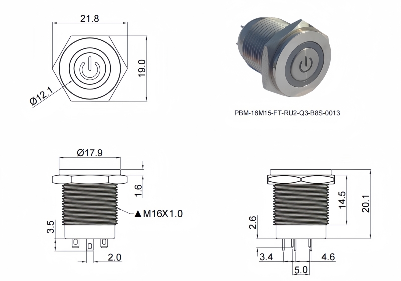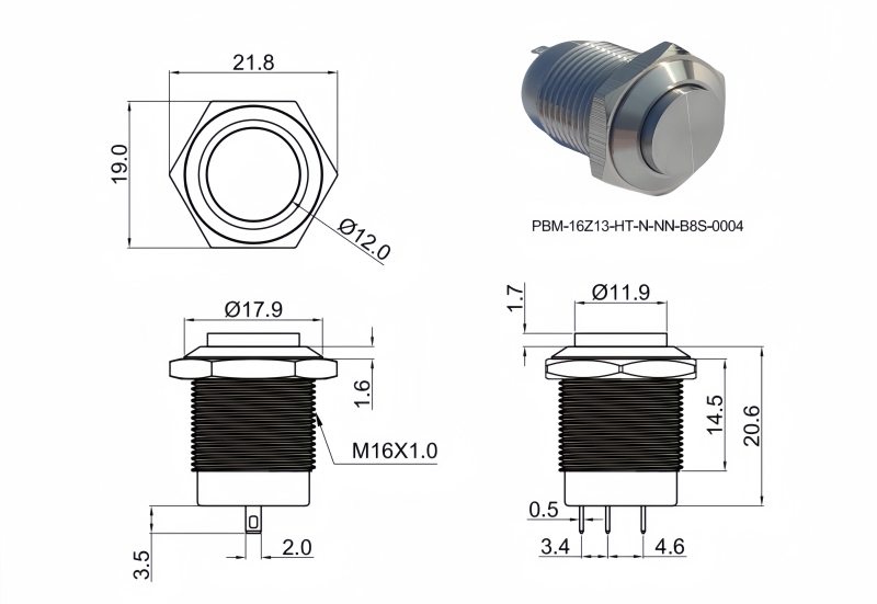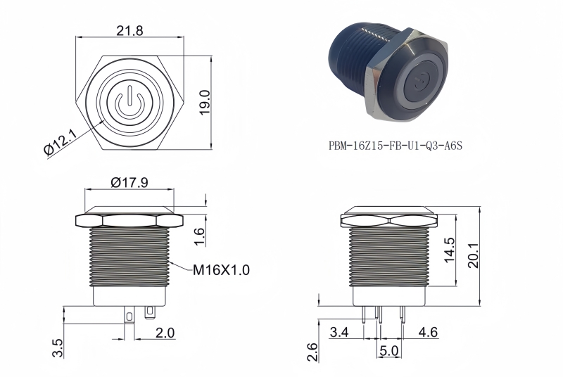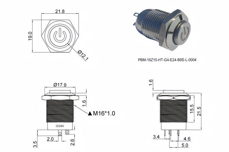 16mm短款金屬按鈕開關