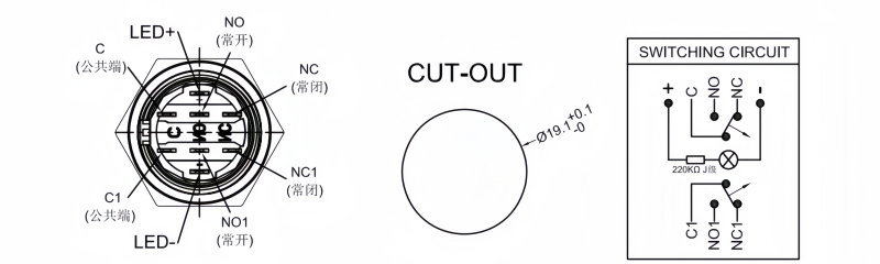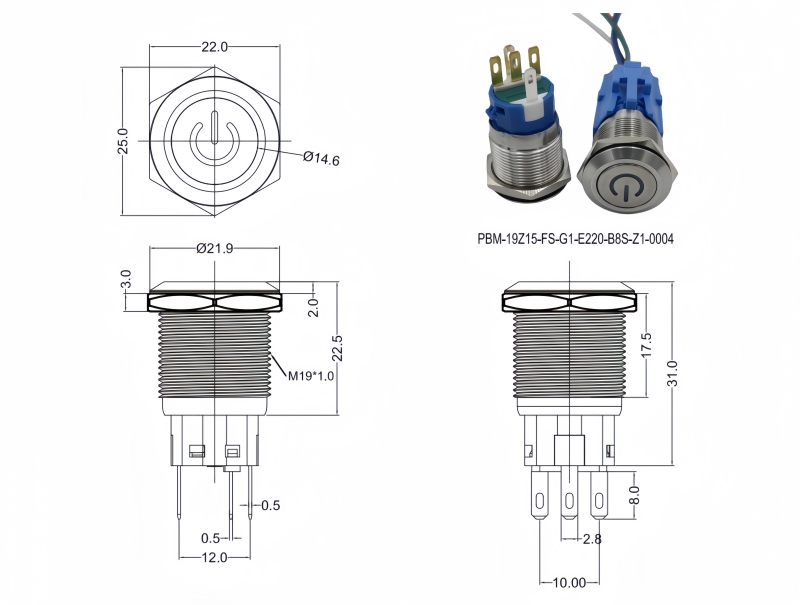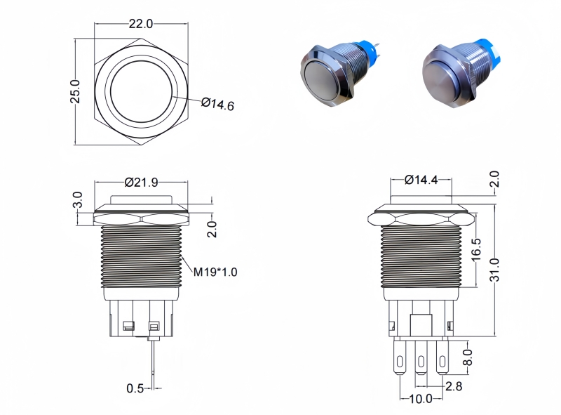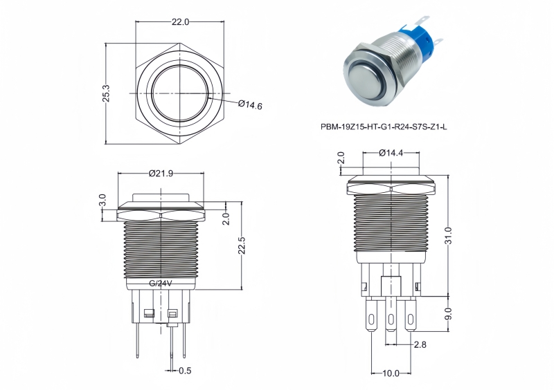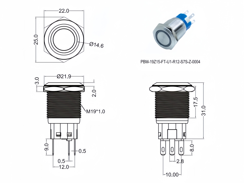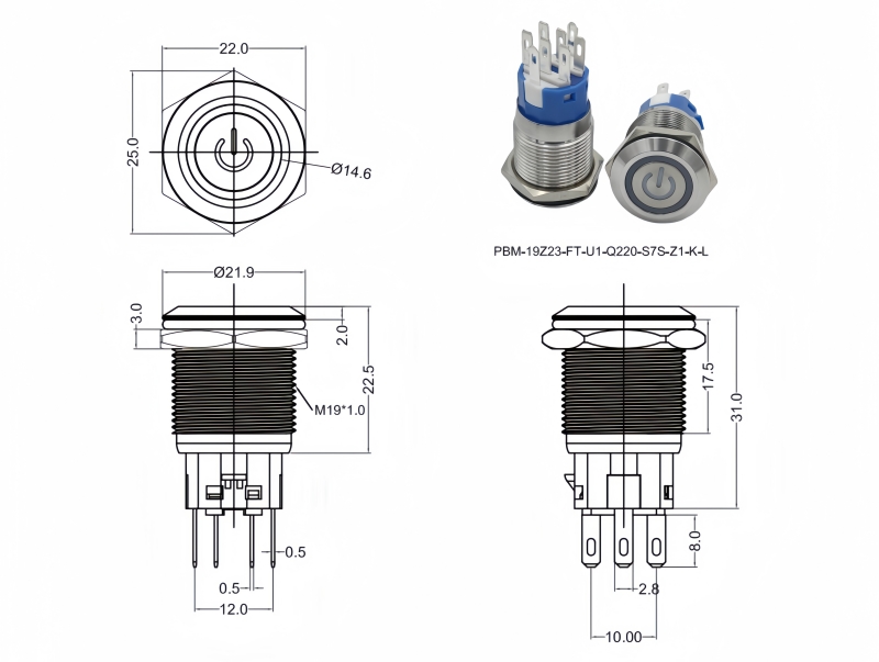 Metal Pushbutton Switches / PBM-19 Series