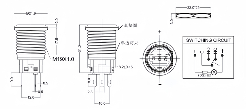 19mm金屬按鈕開關IP67