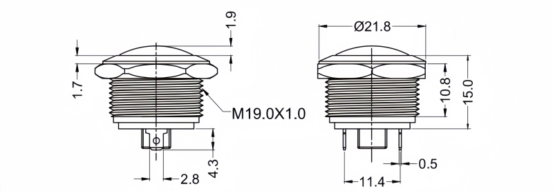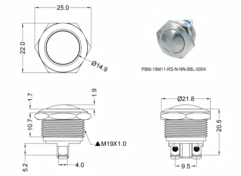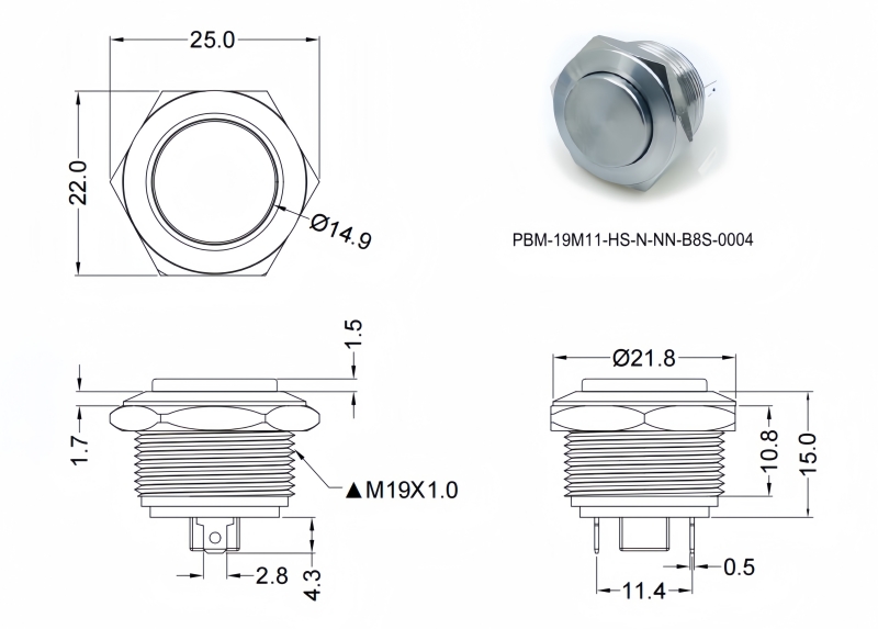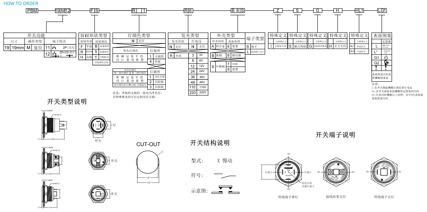 MATERIALS BUSHING : Stainless Steel / Nickel plated brass / Aluminum alloy BASE : PBT. ACTUATOR : Stainless Steel / Nickel plated brass / Aluminum alloy INNER ASSEMBLY : POM / PA66. SPRING : Spring steel. SEALING : Sillicone. O-Ring : Sillicone TERMINAL : Brass,with silver or gold plated. HEX NUT : Nickel plated brass |