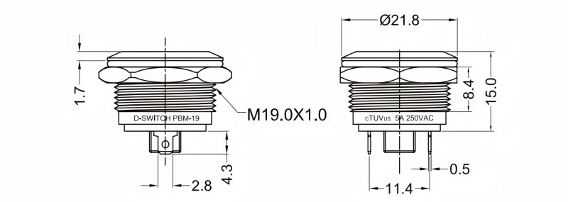 Contact Rating: lth 5A/250VAC resistive load 3A/250VAC Electrical Life: 50,000 make-and-break cycles at full load Torque: 5~14Nm Travel: About 2.0mm