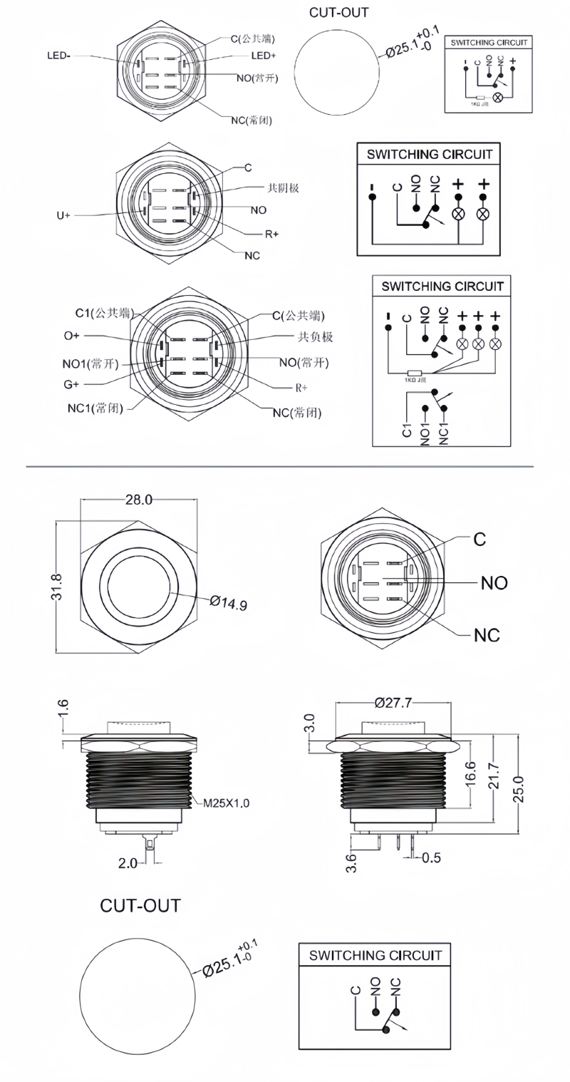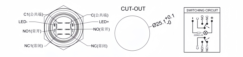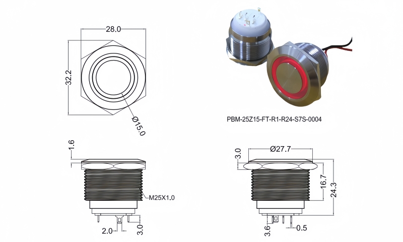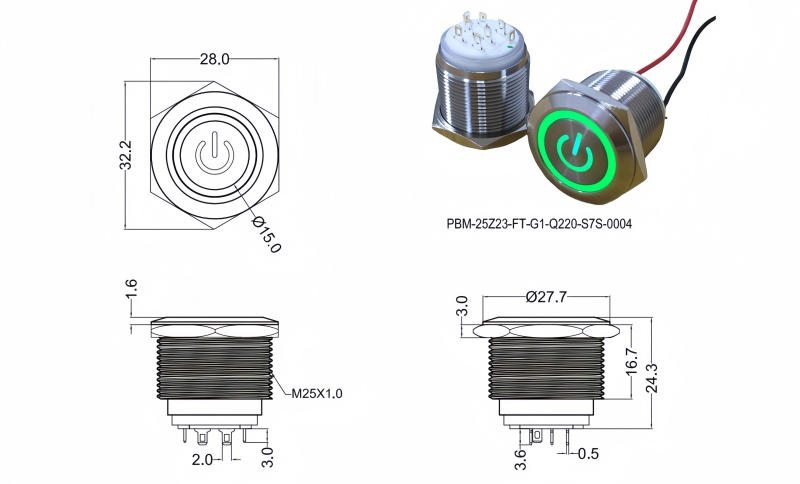 25mm短款金屬按鈕開關(guān)