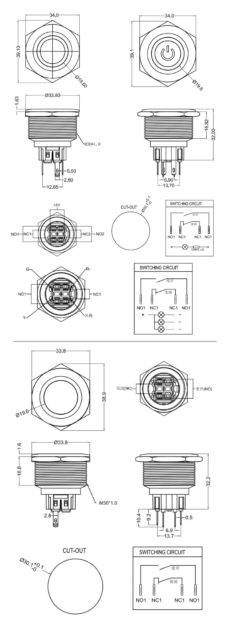 30mm金屬按鈕開(kāi)關(guān)IP67
