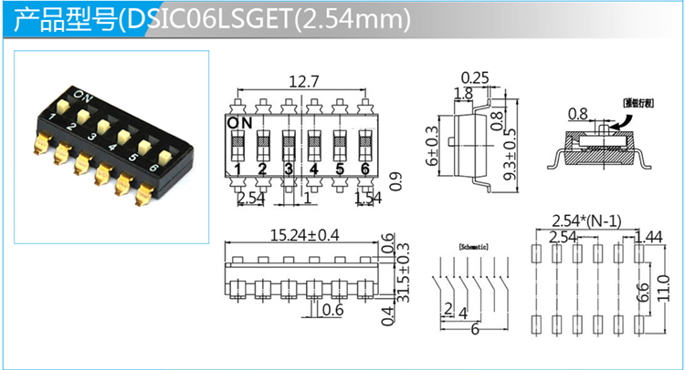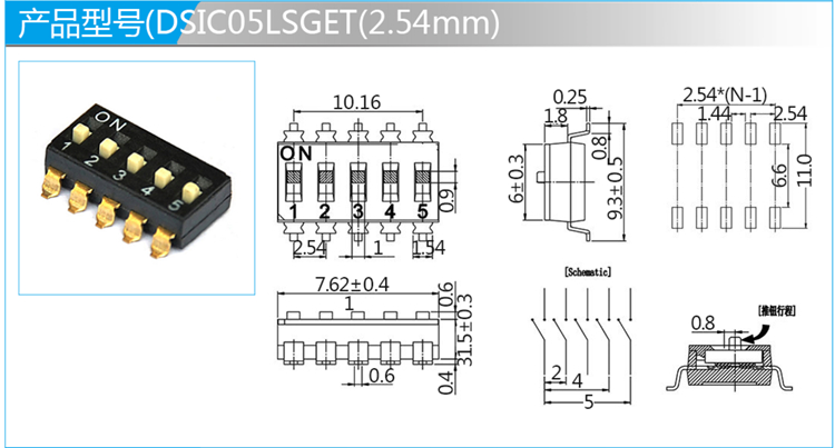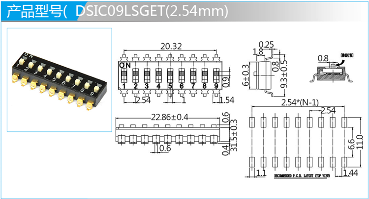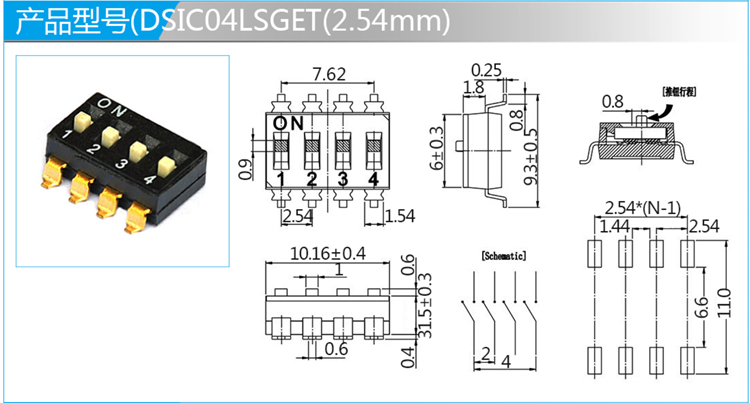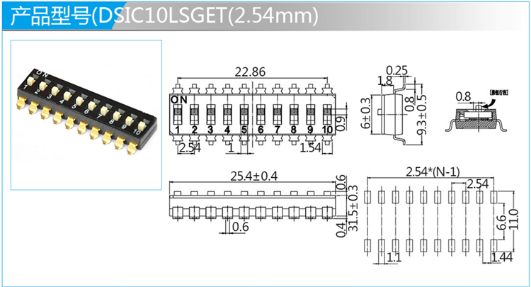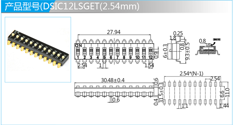 2.54mm撥碼開關(guān)SMT