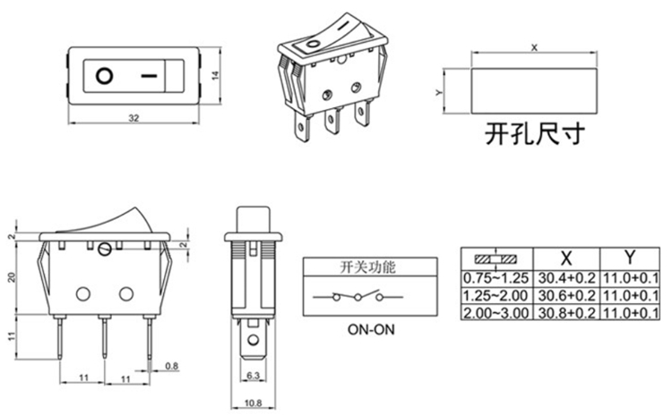 Contact Configuration: ON-OFF ON-OFF-ON ON-ON (ON)-OFF-(ON)