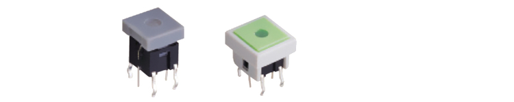 Features ※ Improve mounting density of components on PC board. ※ Reflow solderable ※ Sharp “click” feel with a positive tacile feedback ※ Packaged with a 12mm wide embossed taping.