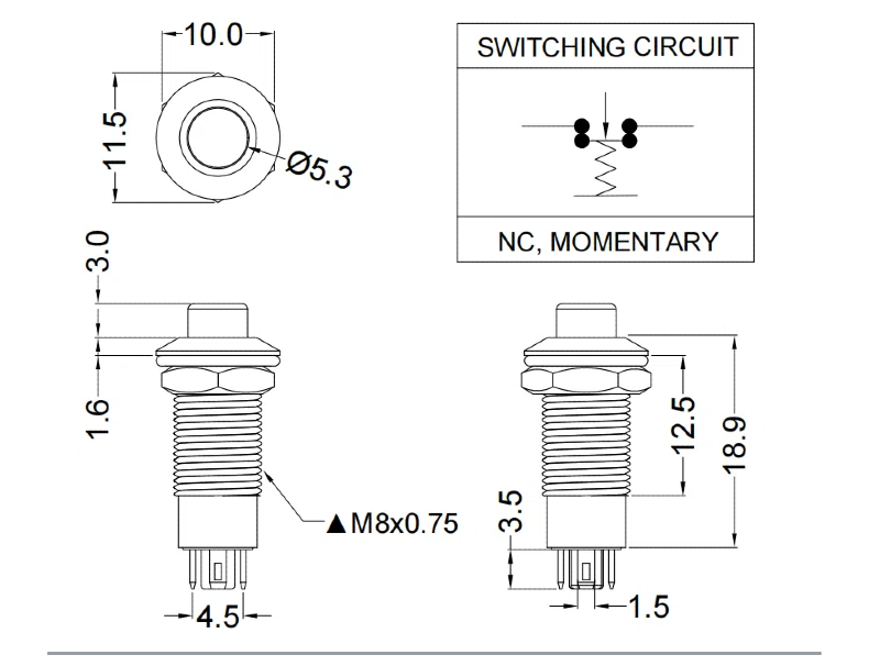 Contact Rating: 0.3A 12VDC Electrical Life: 50,000 make-and-break cycles at full load Torque: 5~14Nm Travel: About 3.0mm