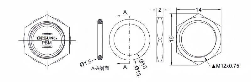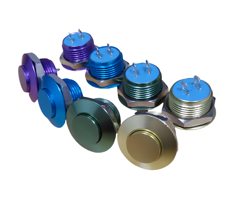 MATERIALS BUSHING : Stainless Steel / Nickel plated brass / Aluminum alloy BASE : PBT, PC ACTUATOR : PC ; Stainless Steel / Nickel plated brass / Aluminum alloy INNER ASSEMBLY : POM / PA66. SPRING : Spring steel. SEALING : Sillicone. O-Ring : Sillicone TERMINAL : Brass,with silver or gold plated. HEX NUT : Nickel plated brass