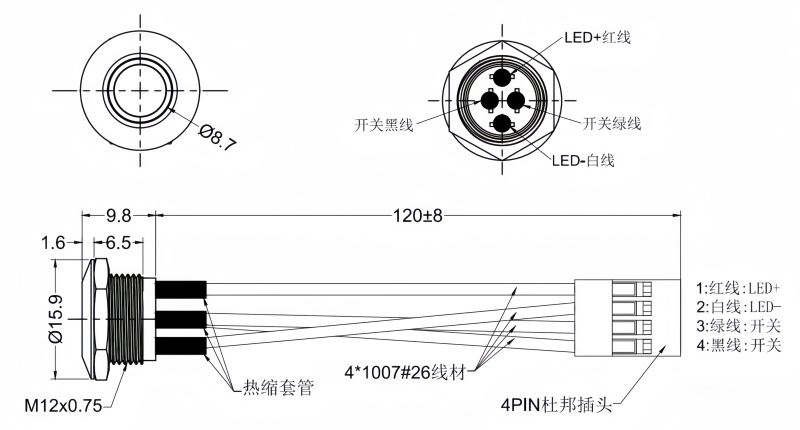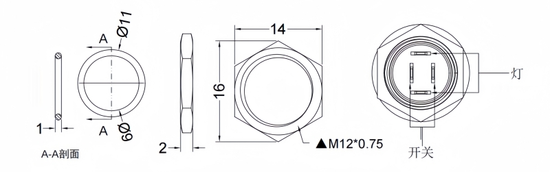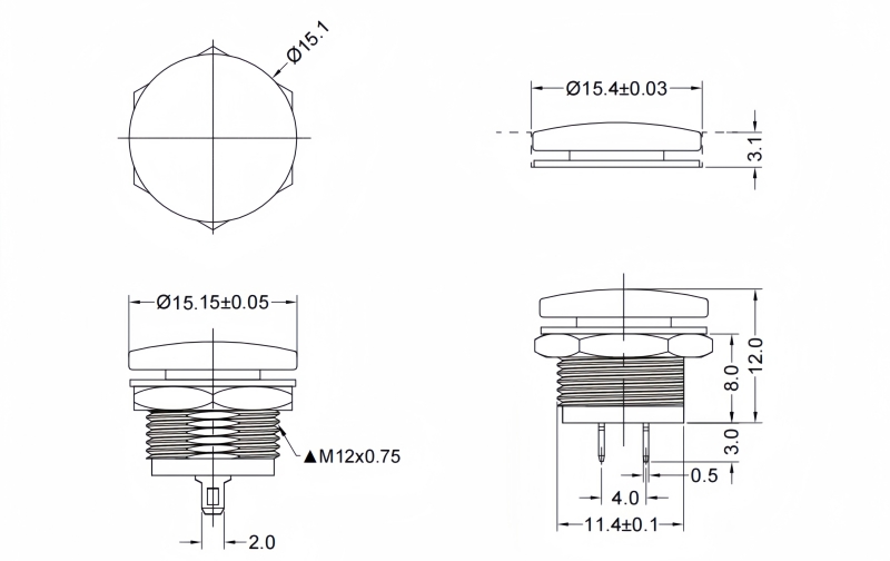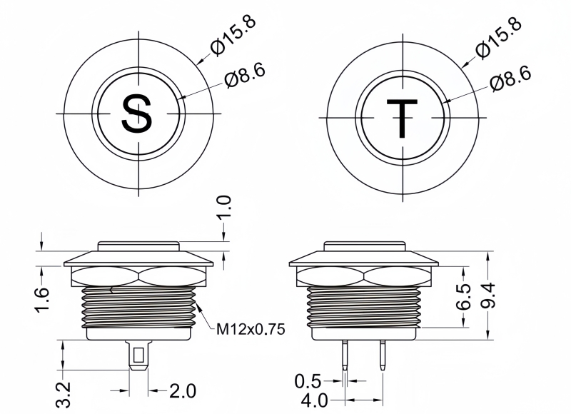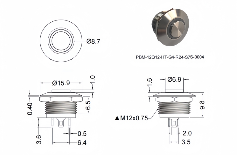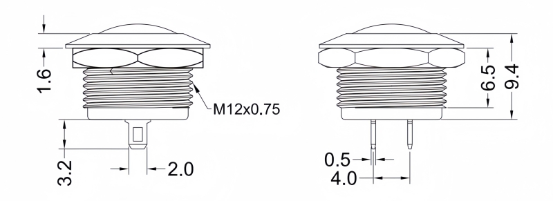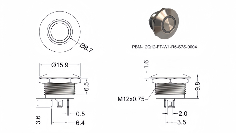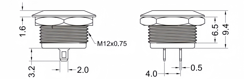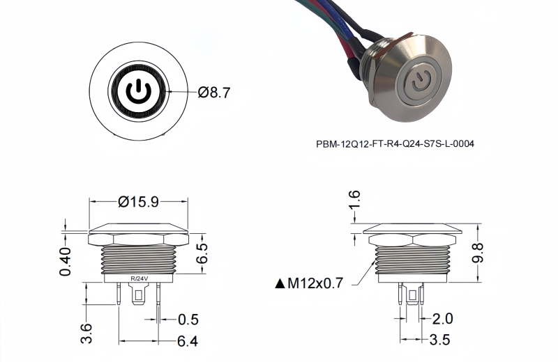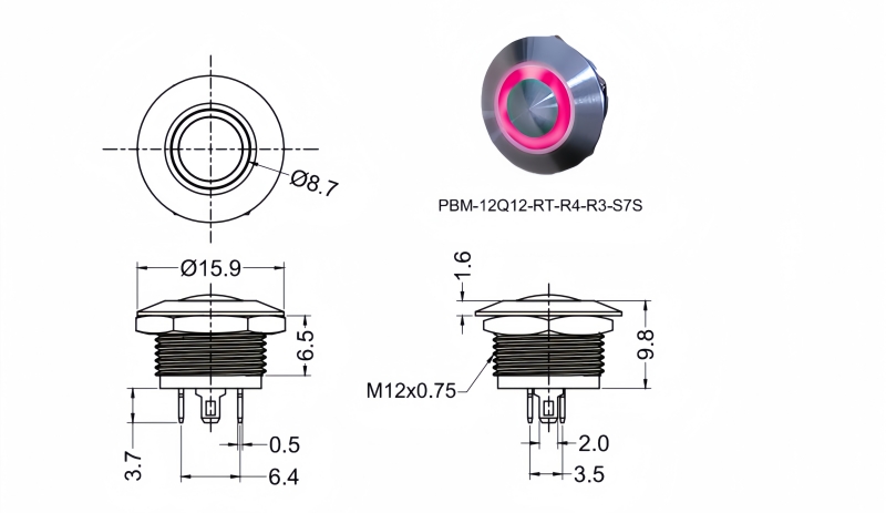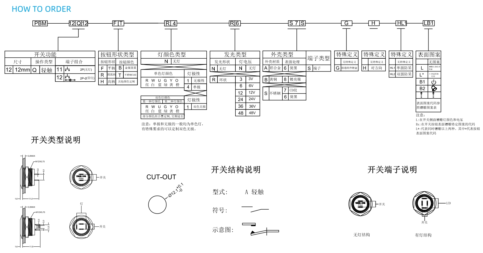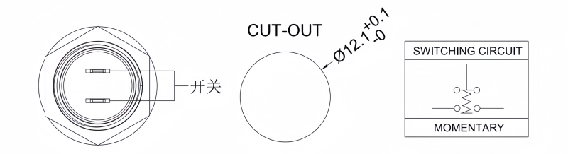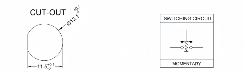 Panel Thickness: Ø12.20mm Function:(ON)-OFF Momentary
