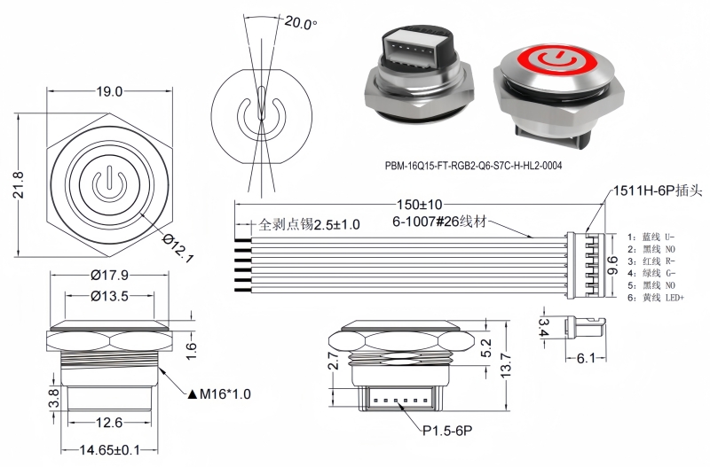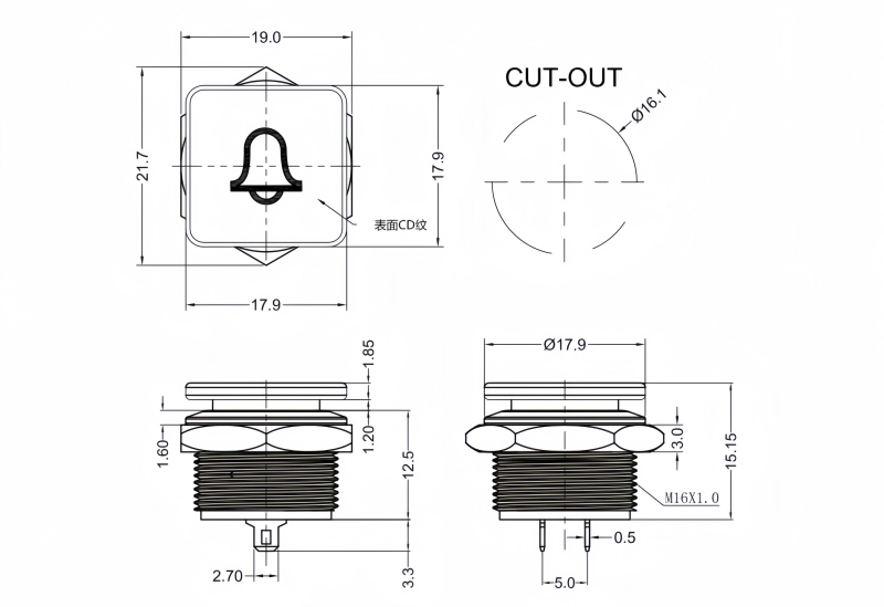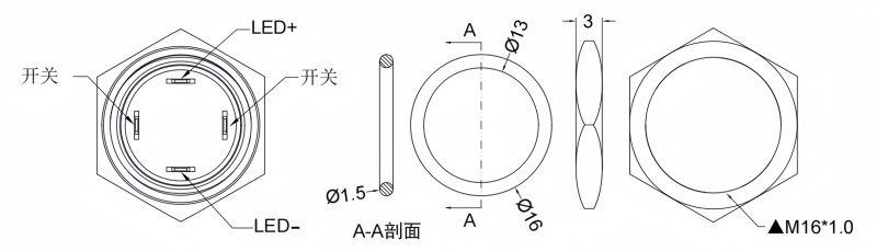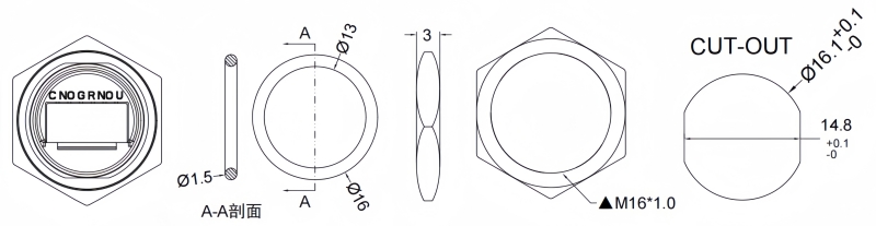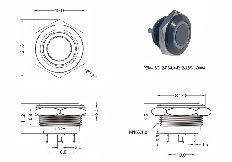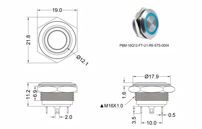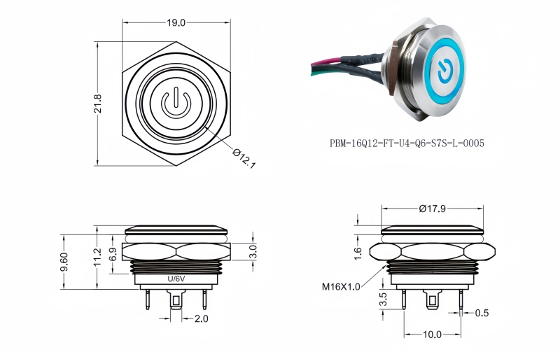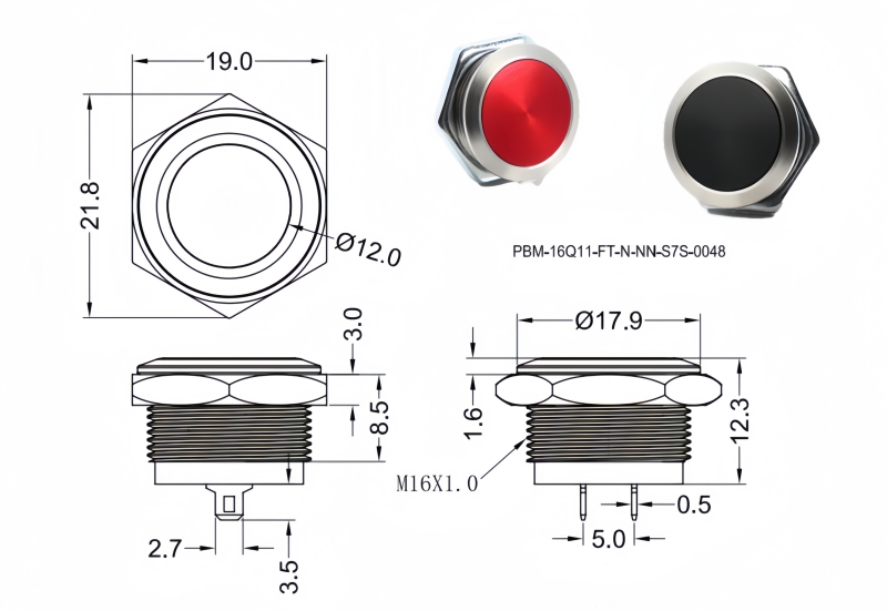 Panel Thickness: Ø16.20mm Function:Momentary