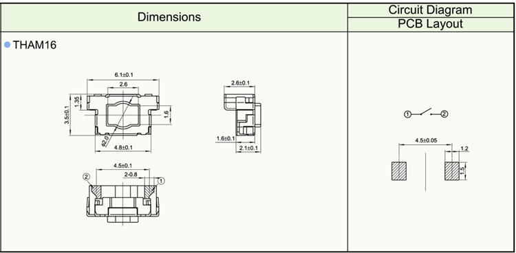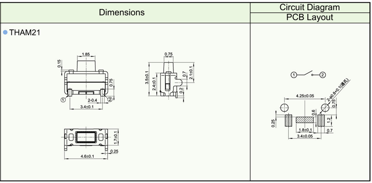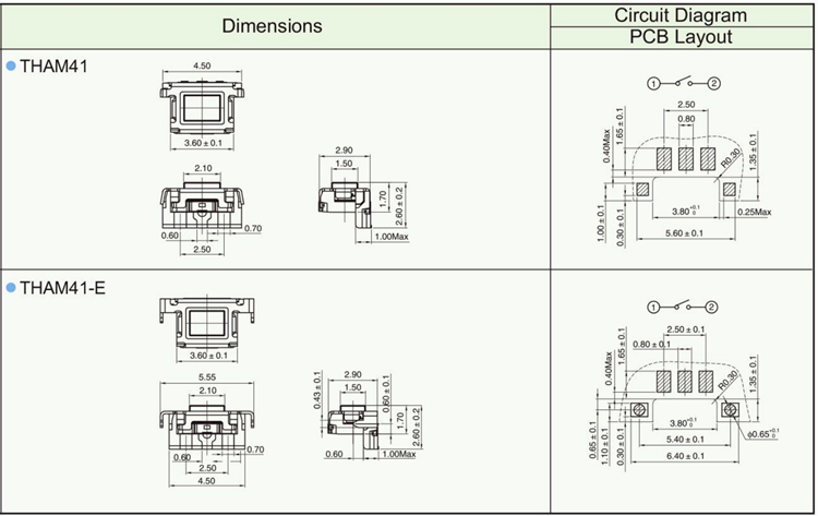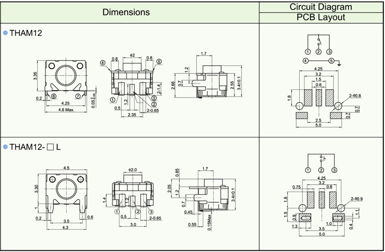 Features ※ Improve mounting density of components on PC board. ※ Reflow solderable ※ Sharp “click” feel with a positive tacile feedback ※ Packaged with a 12mm wide embossed taping.