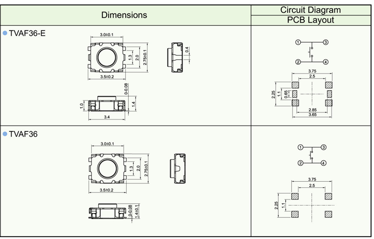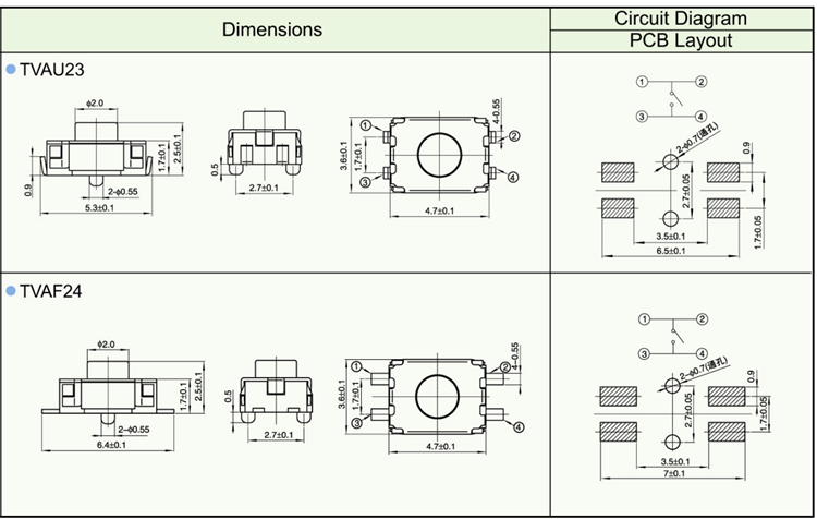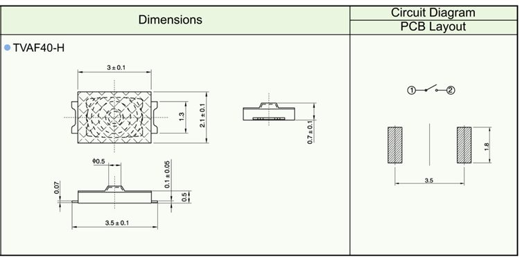 Features ※ Improve mounting density of components on PC board. ※ Reflow solderable ※ Sharp “click” feel with a positive tacile feedback ※ Packaged with a 12mm wide embossed taping.