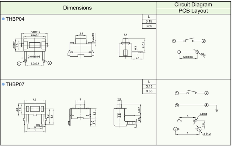Tact Switches / THB Series SAFETY/QUALITY APPROVALS ROHS