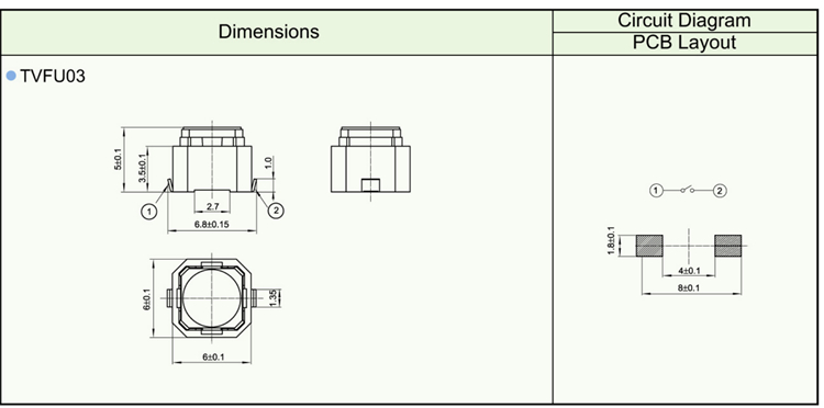 Tact Switches / TVF Series SAFETY/QUALITY APPROVALS ROHS