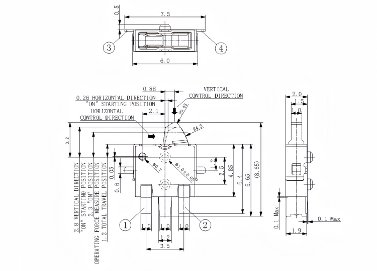Contact Rating: 50u A 3V DC to 10mA 5V DC(Resistive load)