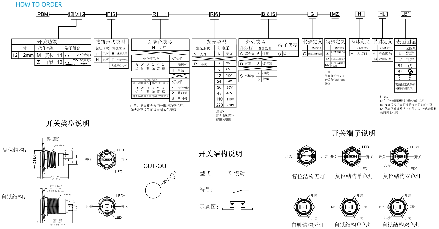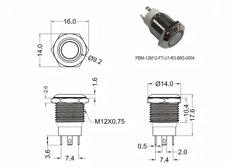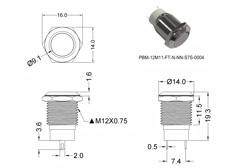 Metal Pushbutton Switches / PBM-12 Series
