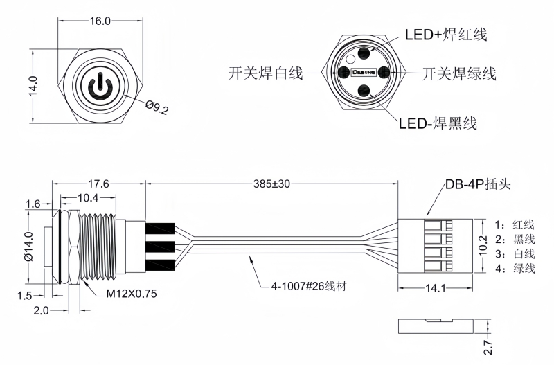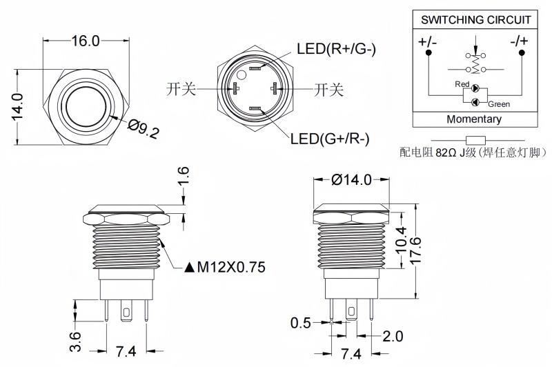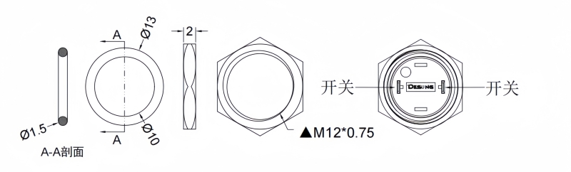 12mm復位金屬按鈕開關