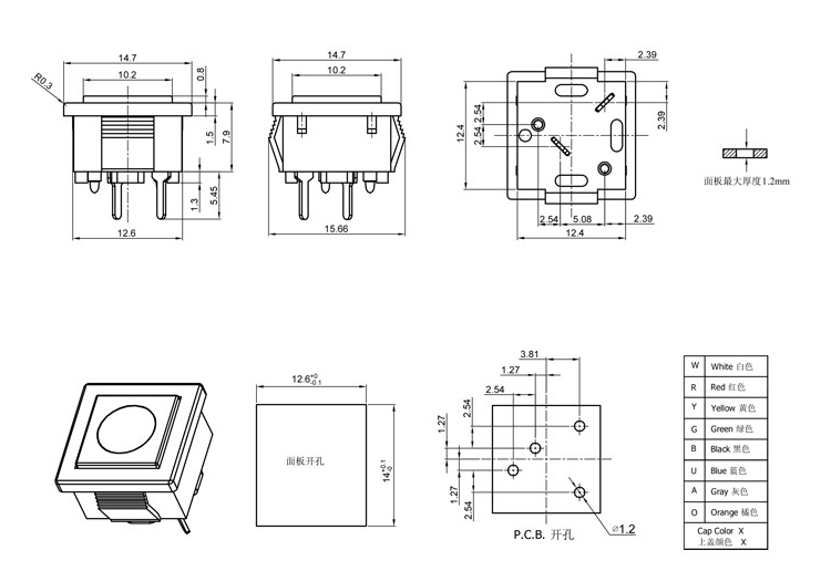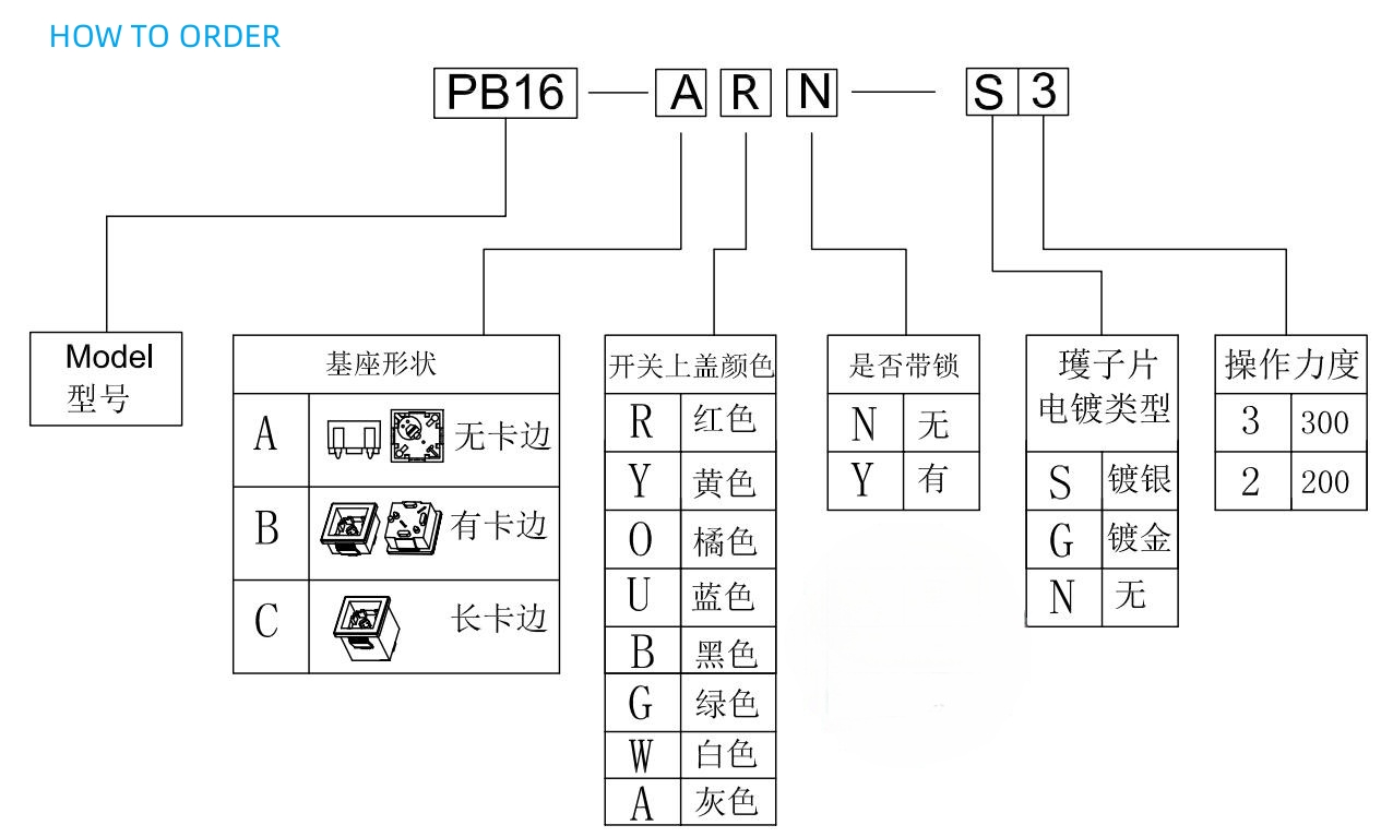 MATERIALS BUSHING : PA66 BASE : PA66 ACTUATOR : ABS INNER ASSEMBLY : POM / PA66. SPRING : Spring steel. TERMINAL : Brass,with silver or gold plated. |