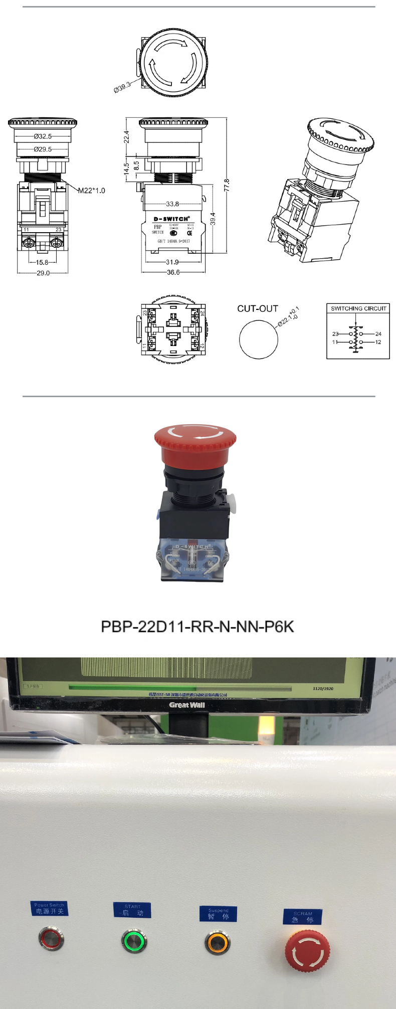 22mm急停開關