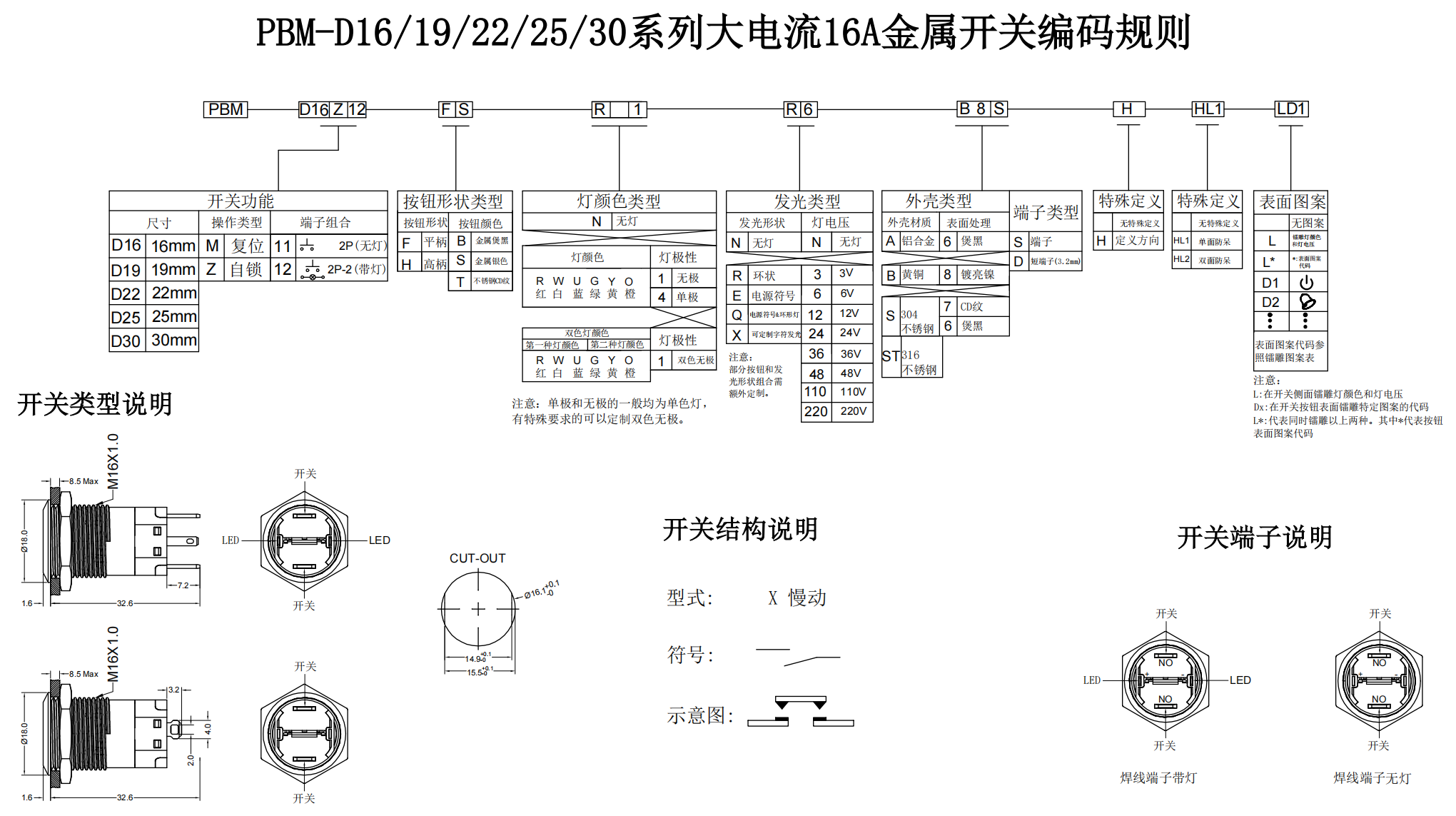 Metal Pushbutton Switches / 16A PBM-D22 Series