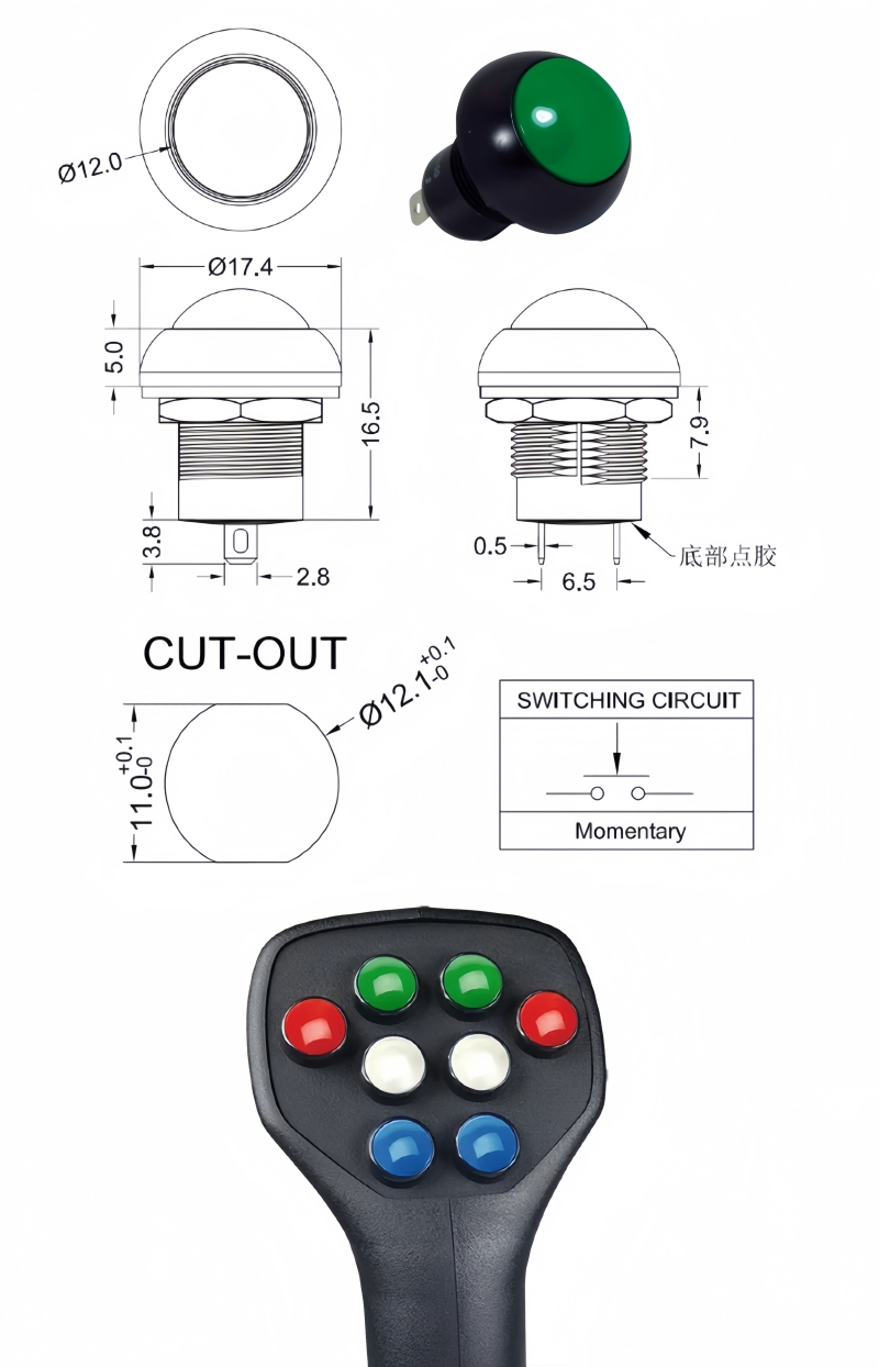 采購:12mm IP68復(fù)位防水開關(guān)5A