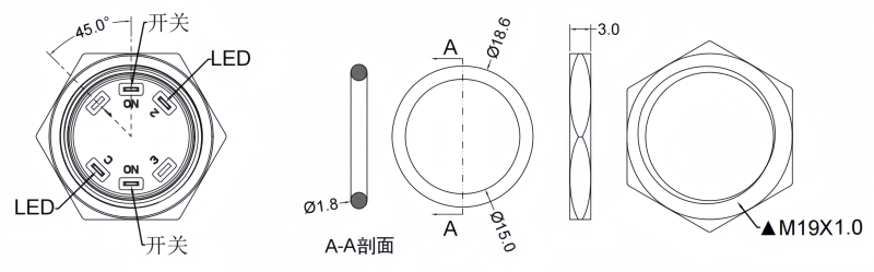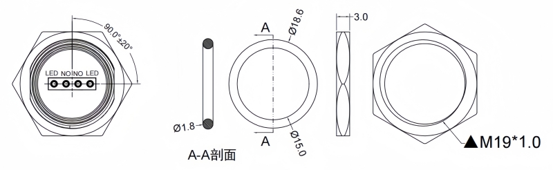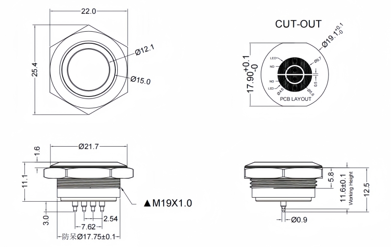 Panel Thickness: Ø19.20mm Function:Momentary