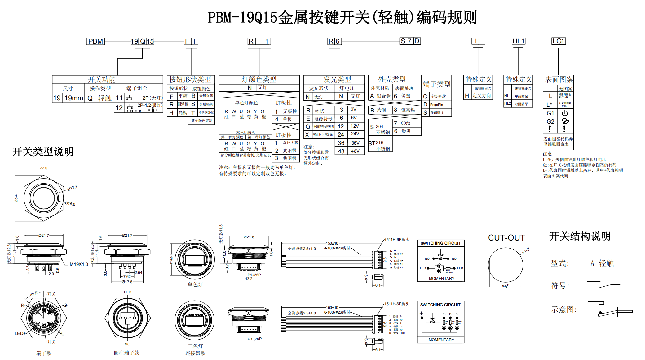 Metal Pushbutton Switches / PBM-19Q Series